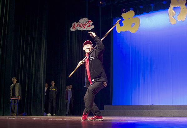 他还从拿金箍棒的方式、走路的姿态等细节方面,具体地向大家解释如何将猴的动物性和人的社会性完美地结合在一起,来诠释孙悟空的形象。活动最后,六小龄童为现场的观众带来了一场精彩的表演,赢得了现场的阵阵掌声。