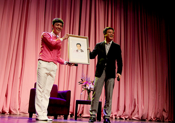 接下来,几位学生代表向朱军赠送了一份小礼物——惟妙惟肖的朱军卡通版头像画。讲堂最后是朱军的新书《朱军荧屏悟语》的现场签售环节,热情洋溢的同学们在工作人员的组织下有序上台,让