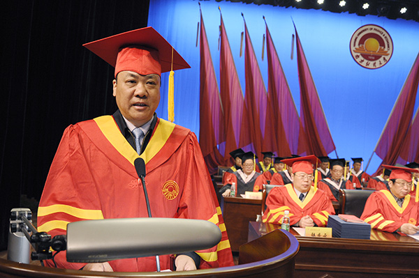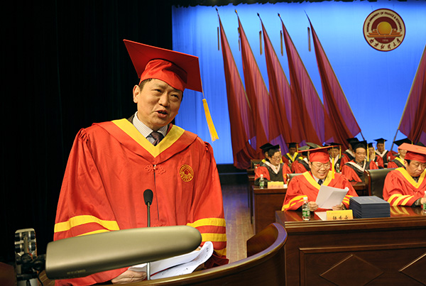 全体校领导为获得硕士学位的全体研究生颁发了硕士学位证书 校摄协 保险12级 李凯瑞/摄