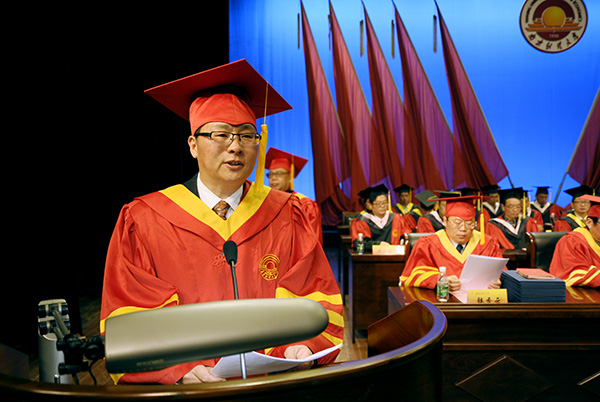 副校长王开田教授主持毕业典礼暨学位授予仪式 校摄协 保险12级 李凯瑞/摄