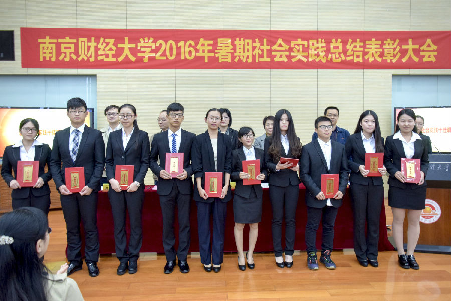 教务处处长陆华良宣读了《关于表彰beat365英国官方网站2016年暑期“三下乡”社会实践活动先进集体和先进个人的决定》,经济学院等6个学院获得“先进单位”荣誉称号;食品科学与工程学院等5个学院获得“优秀宣传成果奖”;经济学院“水泥丛林下的倾听团队”等10支团队获得“十佳团队”荣誉称号;外国语学院石贤等10位同学获评“十佳使者”;法学院“‘眼着墨色•心沐阳光’——盲人盲道调研组”等10支团队获评“十佳风尚奖”;国际经贸学院“农业产业化典型案例调查与研究——以抚松县万良镇人参产业为例”等10份调研报告获评“十佳调研报告”;金融学院中国人民银行南京分行营业管理部等13个基地获评“优秀实践基地”。