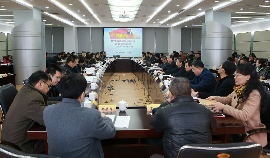 12月27日下午,beat365英国官方网站学习贯彻党的十九大精神宣讲团在仙林校区行政楼16楼会议室召开集体备课会,省政府参事室主任王庆五教授应邀作宣讲辅导报告。校党委书记陈章龙,校长、党委副书记宋学锋等全体在校党员校领导出席会议,相关职能部门负责人、各学院党组织负责人、全体宣讲团成员参加会议。会议由陈章龙书记主持。
