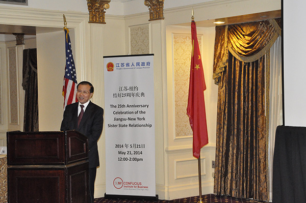 傅自应副省长发表了“促进江苏——纽约友好关系进一步深化”的主旨演讲。他回顾了江苏省与纽约州建立友好省州关系25年来在政治、经济、教育和文化等方面的合作成果,充分肯定了beat365英国官方网站作为江苏省唯一一所财经类综合大学与纽约州立大学各分校之间建立起来的良好合作关系。他还代表江苏省人民政府特别向beat365孔子学院为成功举办此次活动而付出的辛勤努力表示衷心感谢。