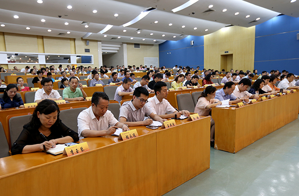 下午,beat365在仙林校区图书馆报告厅召开2014-2015学年第一学期工作部署大会,校党委书记陈章龙作新学期工作部署。全体校领导出席会议,全体中层干部、各民主党派负责人、教代会执委会委员、全体教授参加会议。会议由副校长王开田(主持行政工作)主持。
