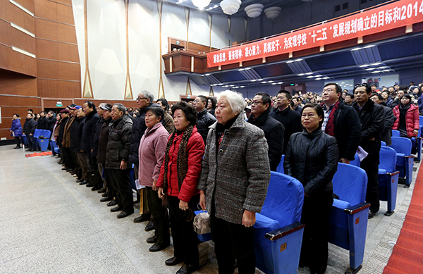 最后,陈章龙书记希望全校教职员工在校党委的正确领导下,千方百计抢抓机遇,满怀信心迎接挑战,以更加前瞻开阔的发展思路,更加奋发有为的精神状态,更加切实有效的改革举措,更加求真务实的工作作风,进一步解放思想,振奋精神,凝心聚力,真抓实干,为实现学校“十二五”发展规划确立的目标和2014年的各项工作任务而努力奋斗!