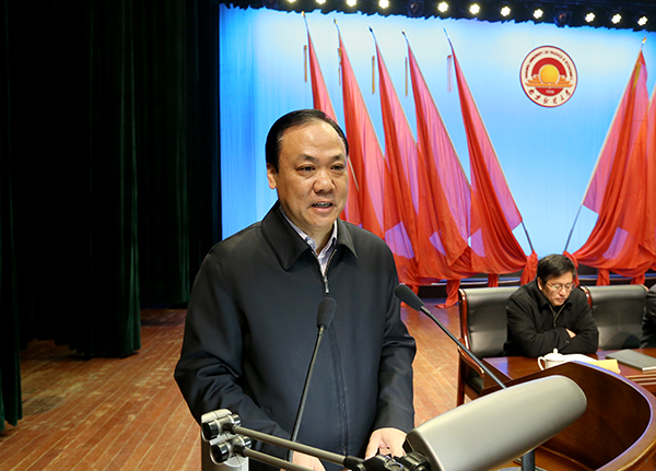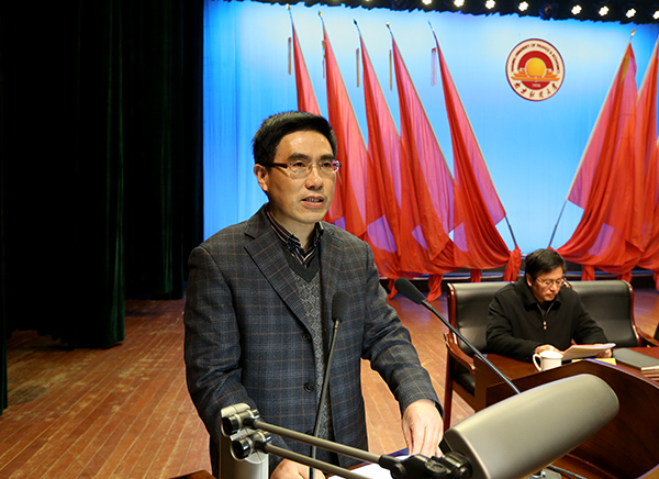 会议在雄壮的国歌声中拉开帷幕。陈章龙书记作《beat365英国官方网站2013年度工作报告》,回顾总结学校2013年改革、建设和发展的基本情况,对2014年的主要工作提出初步意见。陈书记从六个方面对学校2013年改革、建设和发展的基本情况进行了回顾和总结:第一,深入学习贯彻党的十八大和党的十八届三中全会精神,深入开展党的群众路线教育实践活动,全面加强党建和思想政治工作;第二,持续深化人才培养模式改革,不断提高人才培养质量,推动学校教学工作协调可持续发展;第三,加强高水平学科建设,不断提升科研与社会服务水平,扎实抓好人才队伍建设;第四,加强学风建设,积极推进职业发展教育、创新创业教育、第二课堂活动一体化建设,努力提升毕业生就业竞争力;第五,大力实施国际化发展战略,深化国际合作与交流,加快教育国际化进程;第六,坚持以人为本,做好各项支撑保障工作,推进和谐校园建设。