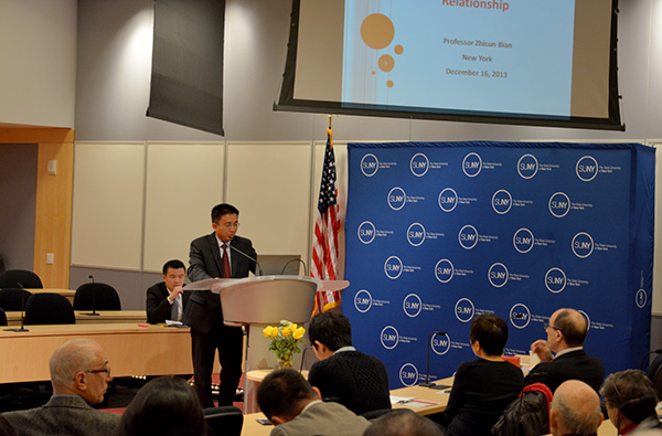 教授应邀在纽约州立大学全球化中心作了题为“中国新一轮经济改革与中美经贸关系”的演讲。这是beat365商务孔子学院“中国商务系列讲座”第一讲。此次演讲吸引了纽约地区近百人报名并参加,其中包括华尔街的金融精英、纽约地区的大学教授以及相关商务人士。讲座现场气氛良好,反响热烈。