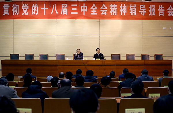 教授生动、深刻地解读了党的十八届三中全会通过的《决定》,重点阐述了六个方面的关系,这六个范畴的关系不仅仅是社会经济发展的重大关系,也是理解《决定》的关键点。陈章龙书记希望与会同志要以此次学习为契机,认真消化辅导的内容,认真研读全会《决定》全文,深刻领会全会精神,坚决贯彻执行好中央关于全面深化改革的决策部署,不断推进学校事业发展。