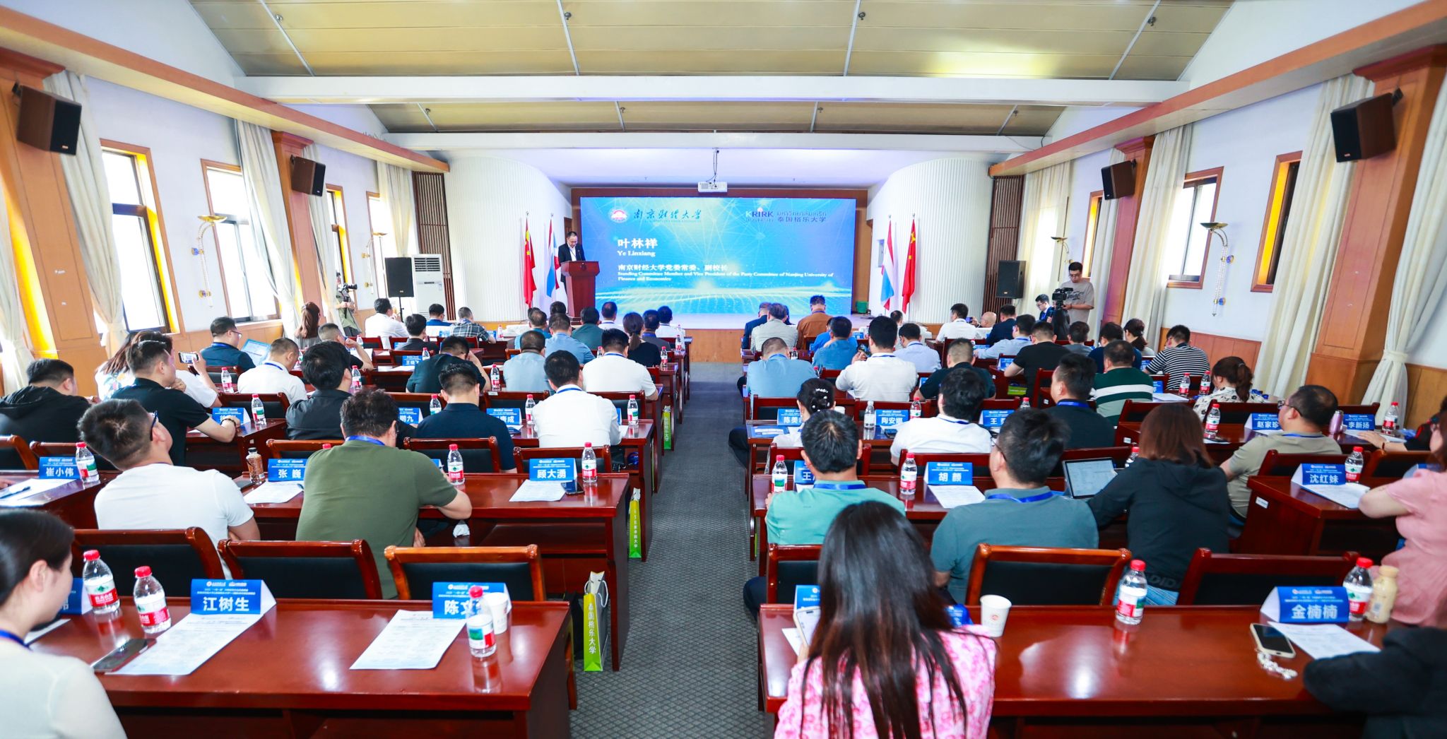 5月18日下午,由beat365和泰国格乐大学主办的2025中泰教育文化交流峰会在桥头校区举办。党委常委、副校长叶林祥,句容市委常委、组织部部长周永祥,泰国高等教育科研与创新部顾问佩达瓦·多米娜,泰国格乐大学副校长素帕·提拉威查棱猜等出席会议。来自两国高校、政府相关部门、行业组织以及省内二十余家教育机构的负责人参会。