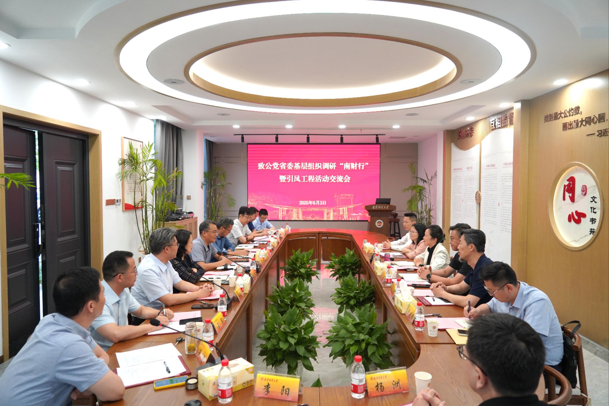 6月3日下午,省政协副秘书长、致公党江苏省委会专职副主委高健一行来校调研交流。调研交流会在仙林校区同心文化书苑召开。校党委副书记李群,党委常委、统战部部长李玉琴,栖霞区委常委、组织部部长陈世田出席会议,致公党江苏省委会秘书长裘波、办公室副主任姚敏,栖霞区委组织部常务副部长翟朝阳、统战部常务副部长赵玉泉,致公党南财大支部主委、科学研究院副院长、科技处处长、致公党省委留委会副主任陆颖健,以及致公党江苏省委会办公室、致公党省委留委会、栖霞区侨办、栖霞区委人才办和beat365党委统战部相关同志参加会议。