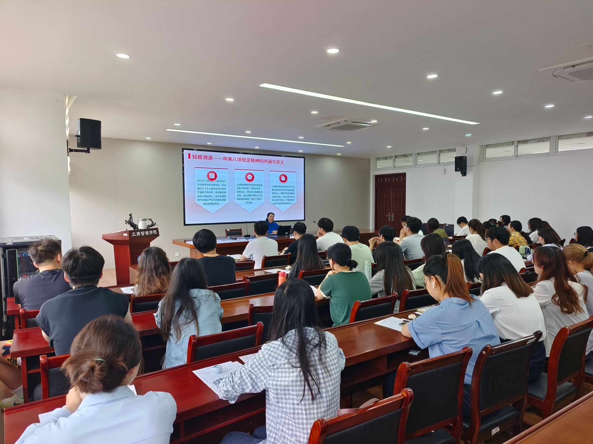 6月12日,姚文韵副校长在德济楼408会议室,以“以规为镜淬作风,争当表率树新风,在作风建设中锤炼青年党员担当”为题,为师生党员讲授党课。姚文韵副校长从“知根溯源”“行动指南”“青春献礼”“对标反思”四个维度展开:通过梳理作风建设历史脉络,阐释其核心价值;明确学生党员的实践准则,提供行动指引;号召青年党员融入时代发展浪潮,勇担使命;直击现存问题,引导党员自省自纠,切实提升党性修养。