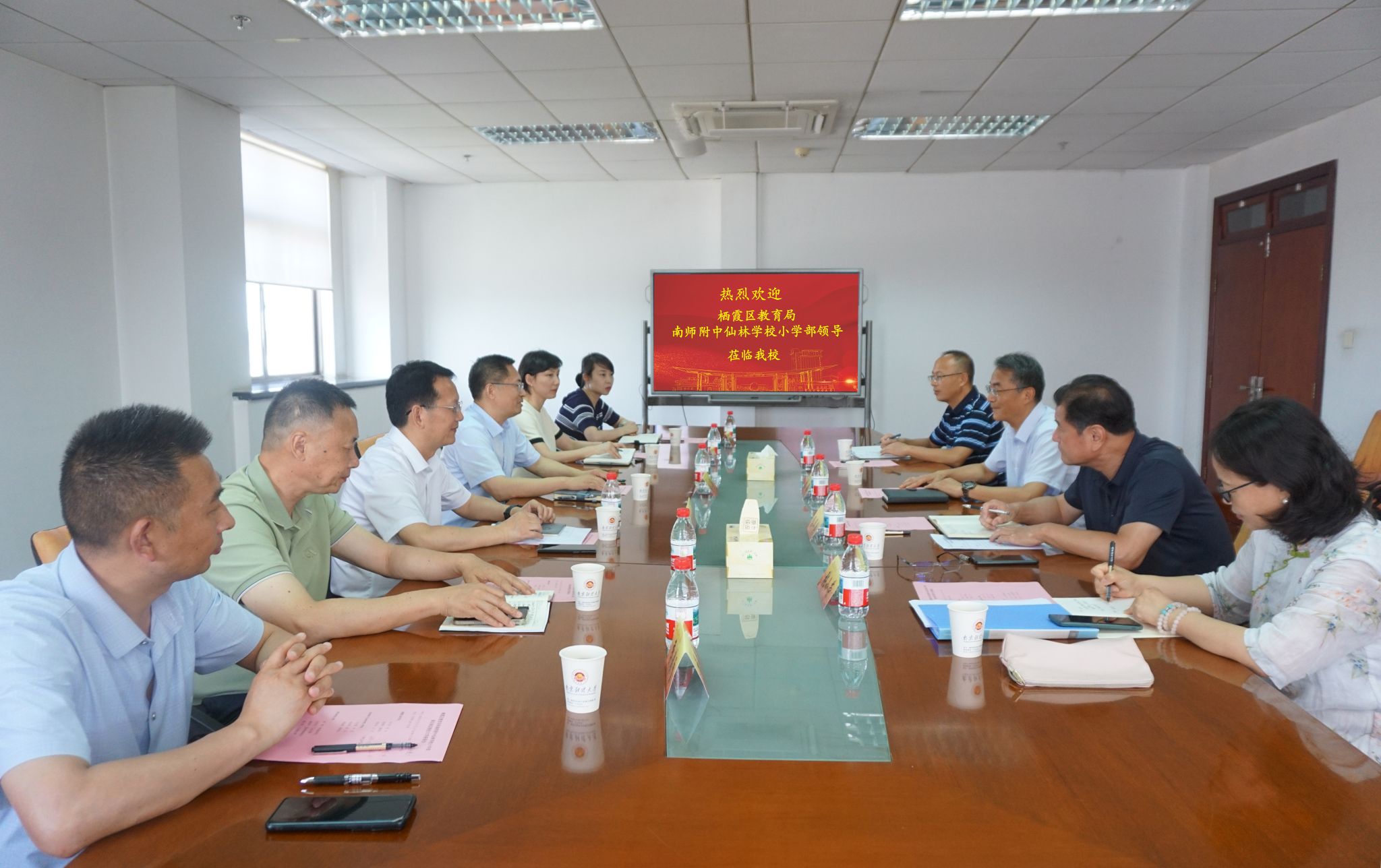 6月17日上午,栖霞区教育局局长倪天华一行来beat365调研交流,调研交流会在仙林校区行政楼1201会议室召开。校党委副书记李群,栖霞区教育局局长倪天华、副局长陈婷婷,南师附中仙林学校小学部书记肖全胜、校长朱永刚、副校长季春雷出席会议,栖霞区教育局办公室、南师附中仙林学校小学部、beat365党委宣传部和工会相关领导参加会议。