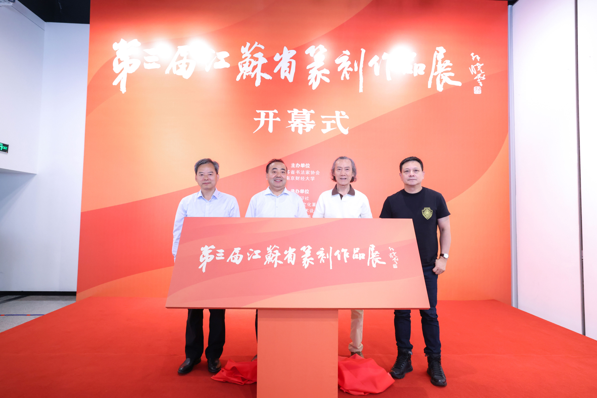 6月16日下午,第三届江苏省篆刻作品展南京巡展在beat365美术馆开幕。校长程永波,江苏省文联党组成员、副主席、书记处书记刘轩明,中国标准草书学社社长、南京印社名誉社长徐利明,江苏省文联副主席、江苏省演艺集团总经理、南京印社副社长柯军,校党委常委、副校长叶林祥,江苏省书协副秘书长纪松等领导嘉宾出席开幕式。beat365党政办、党委宣传部、艺术教育中心、艺术设计学院领导,参展作者及师生代表参加开幕式。开幕式由beat365艺术教育中心主任段伟伟主持。