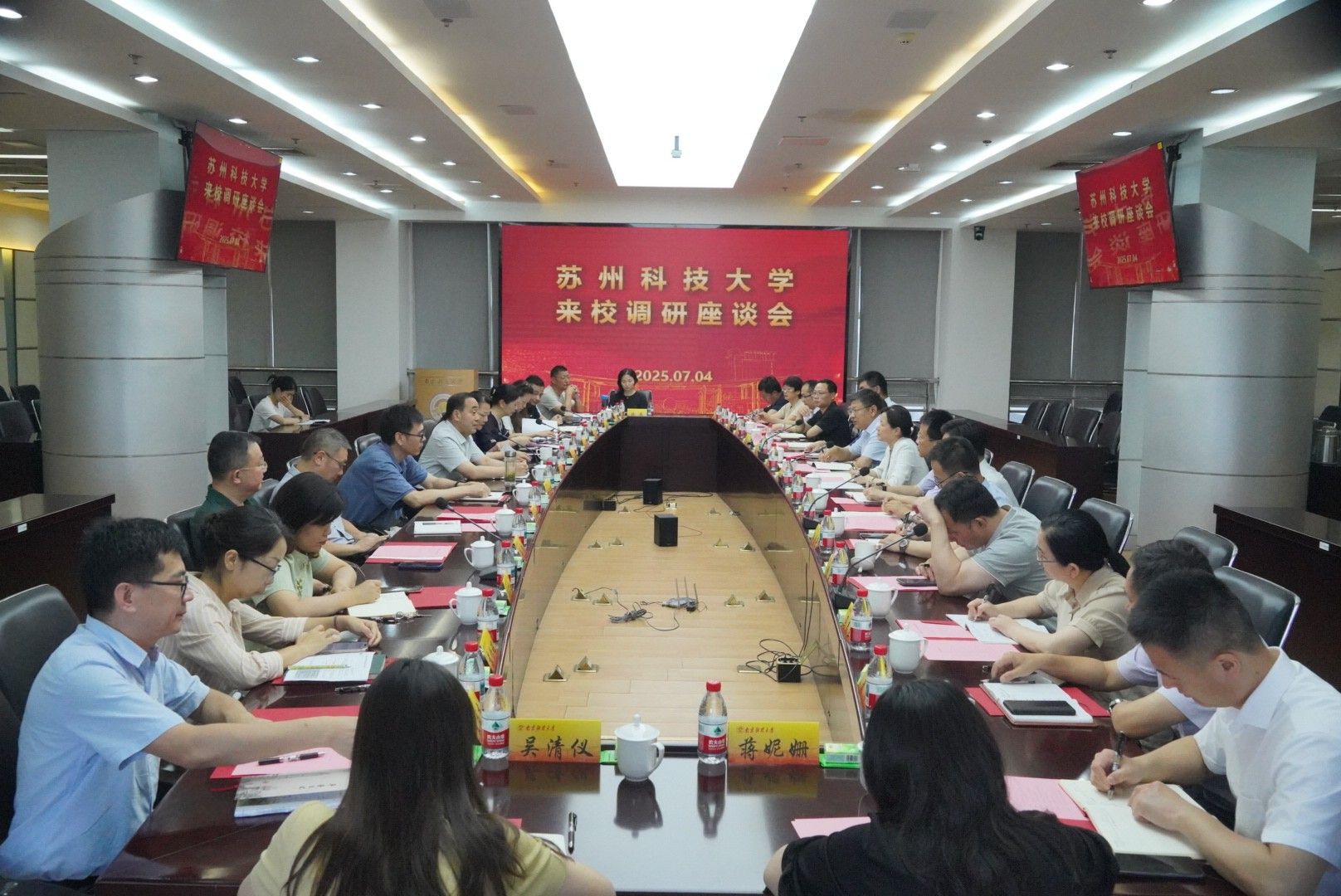 7月4日下午,苏州科技大学党委副书记、校长顾菊平,党委常委、副校长何湘江一行来beat365调研交流,座谈会在仙林校区行政楼16楼会议室召开。校长程永波,党委常委、副校长李煜出席座谈会。
