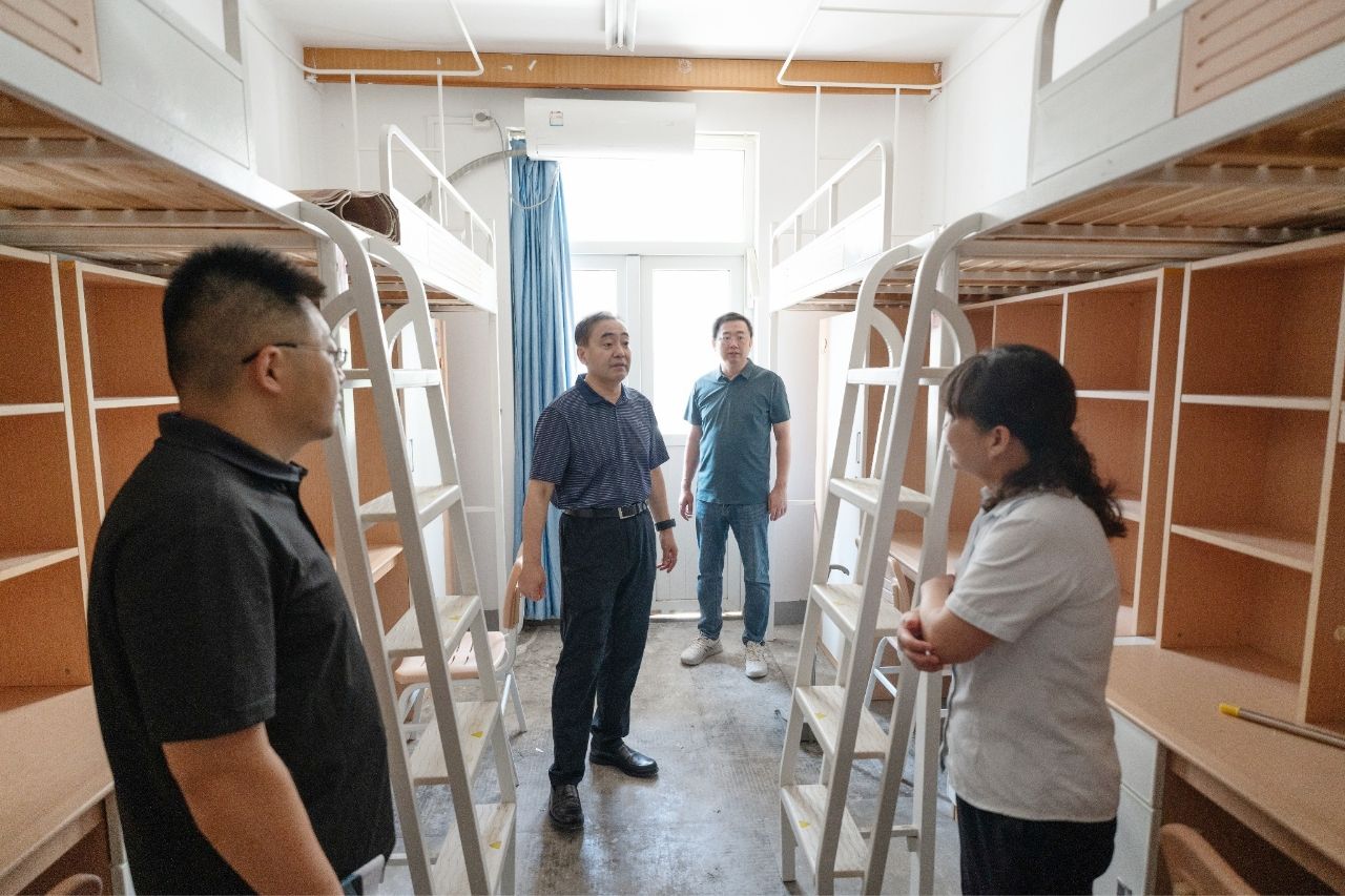 8月4日,程永波校长带队深入校园一线,看望慰问暑期坚守岗位的教职员工和留校学生,并对校园安全运行情况进行实地检查。党委常委、副校长赵国栋,以及党政办,党委宣传部,学生处,党委研究生工作部、研究生院,保卫处,后勤基建处等相关部门负责同志陪同慰问和检查。