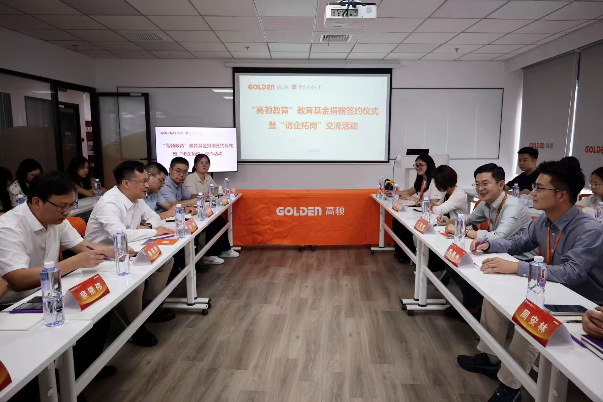 随后,双方就人才培养、产教融合、科学研究等方面展开进一步交流。交流结束后,丁晓靖总经理与方国昌院长、陆明峰处长共同签署捐赠协议。张炳副校长代表学校向高顿教育集团颁发捐赠证书。