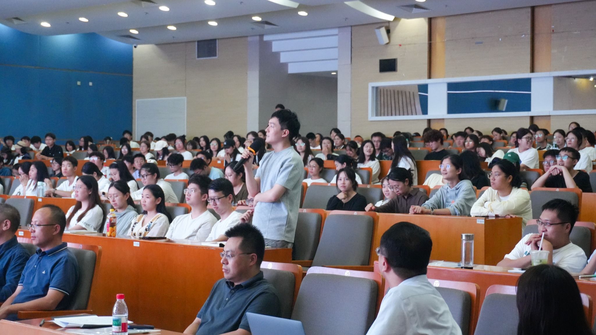 授课中,张利民书记结合自身求学工作经历与研究方向,以家乡的阳明湖引入,围绕湖泊资源环境现状、国内外湖泊治理历程、太湖流域治理案例等三个方面,与在场师生深入交流。“湖泊是地球表面的璀璨‘明珠’,是山水林田湖草的核心组成部分,我们必须倍加珍惜。”张利民书记从湖泊的基本概念讲起,系统阐释湖泊的演化、成因、组成及其生态价值,并分享了自己在相关领域的科研成果与心得体会,鼓励青年学子在科学探索中“勇于提问、勤于思考、敢于质疑”,在科学研究中透过现象看本质、重视“无用之用”。