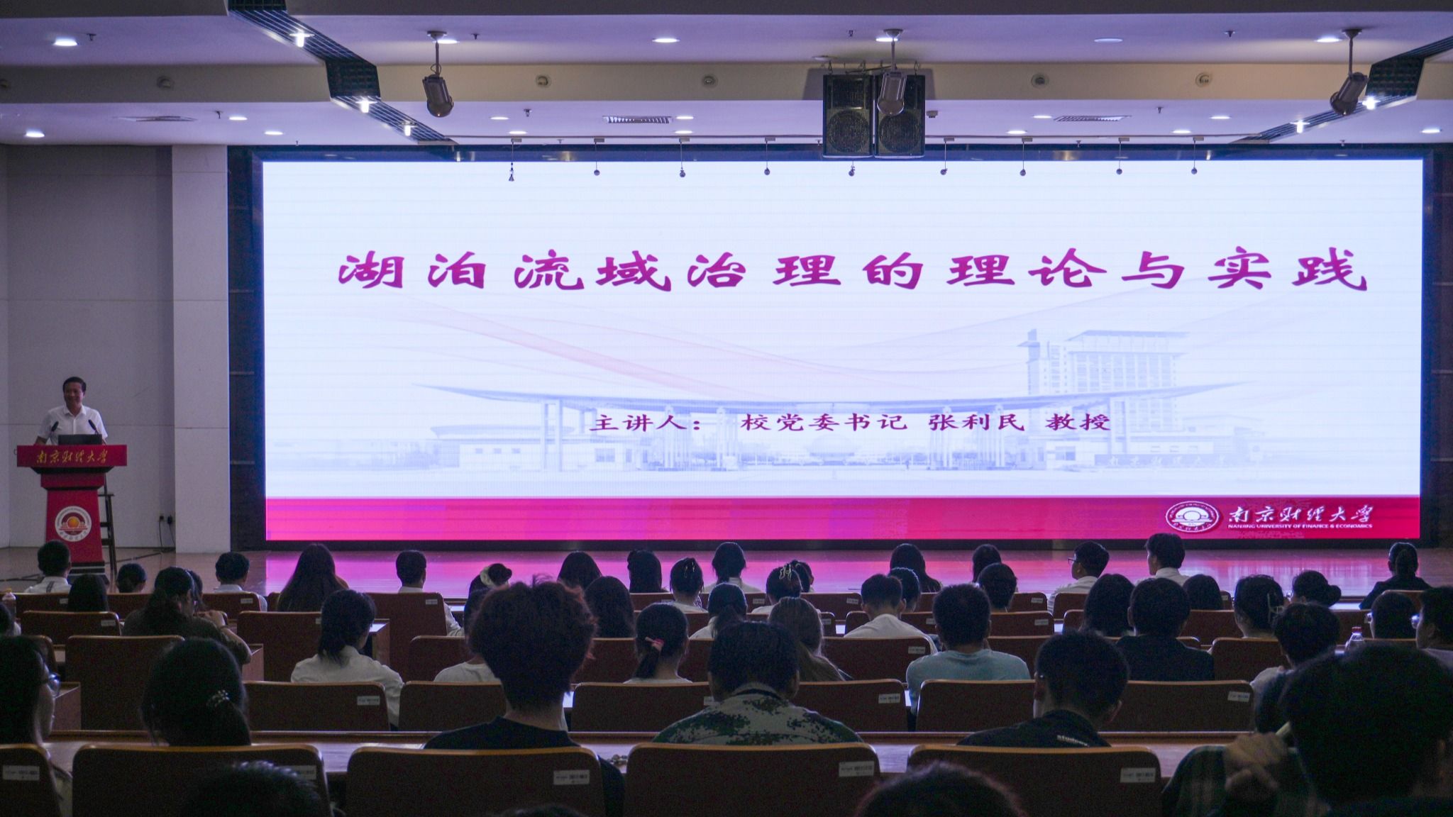 9月24日晚,校党委书记张利民在仙林校区图书馆一楼报告厅讲授主题为“环境管理——湖泊流域治理的理论与实践”的通识教育“名家讲坛”2025年秋季学期第一讲。党政办、党委宣传部、学生处、教务处、公共管理学院等单位负责人,经济学院、绿色经济发展研究院、公共管理学院相关专业博士生、研究生、本科生代表,2025级本科生新生骨干训练营学员代表等300余人参加学习。