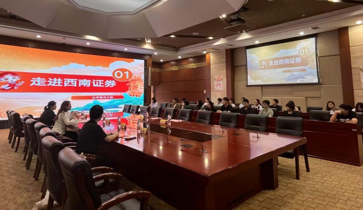 9月26日下午,西南证券股份有限公司江苏分公司2026届毕业生招聘宣讲会在beat365仙林校区工科楼二楼会议室举行。招聘宣讲会前,校党委书记张利民在工科楼二楼贵宾室接待了beat365校友、西南证券股份有限公司江苏分公司总经理熊桢。党委常委、副校长赵国栋及相关单位负责人参加活动。