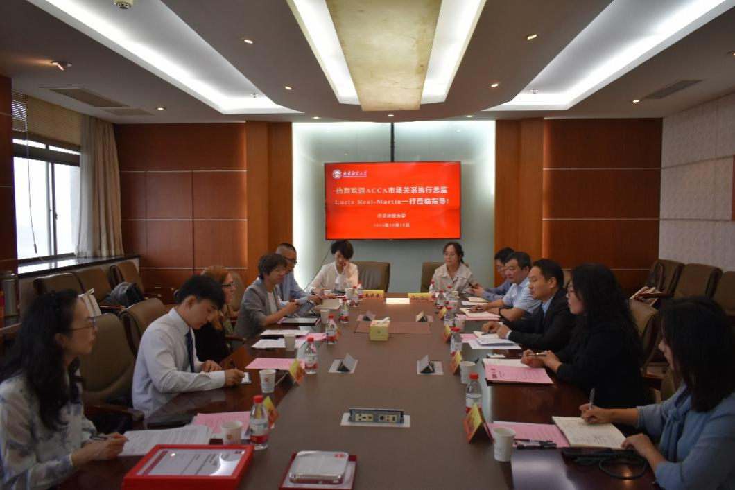 10月15日上午,ACCA(特许公认会计师公会)市场关系执行总监Lucia Real-Martin、ACCA中国总监Ada Leung、ACCA中国内地事务总监Jordan Yu等一行来访beat365。党委常委、副校长方勇在仙林校区行政楼1409会议室会见了ACCA客人。双方就深化会计领域国际化人才培养合作展开会谈。会谈由会计学院院长李翔主持,国际合作与交流处处长杨智华、副处长张楠,会计学院副院长张正勇、教师代表张成等参加会谈。