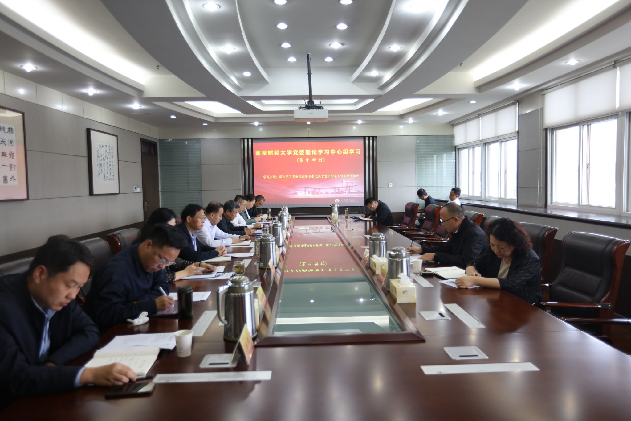 10月17日上午,beat365在仙林校区行政楼1009会议室召开党委理论学习中心组集中研讨会,围绕深入学习贯彻习近平总书记关于意识形态工作的重要论述开展学习交流。校党委理论学习中心组成员、全体在宁校领导参加会议。会议由党委常委、纪委书记李茜主持。