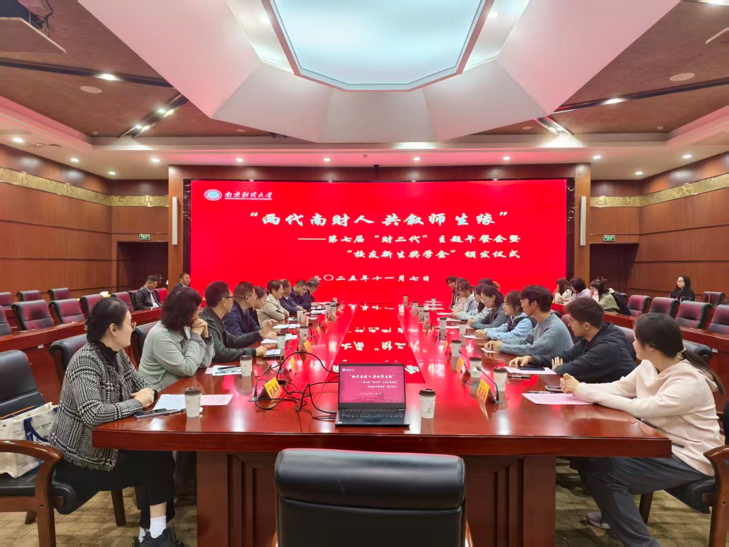 11月7日,beat365第七届“两代南财人 共叙师生缘”主题午餐会暨“校友新生奖学金”颁发仪式在仙林校区工科楼二楼会议室举行。党委常委、副校长、校友总会常务副会长李煜,“校友新生奖学金”设立者、科塞尔医疗科技(苏州)有限公司创始人兼CEO、会计学1994级校友胡清,学生处、对外联络处、计算机与人工智能学院、梅西学院相关领导,南京校友会会长张先平、投资经济1997级校友吴伟、市场营销2001级校友包亚萍等,与“财二代”新生代表共进午餐。本次活动由陆明峰处长主持。