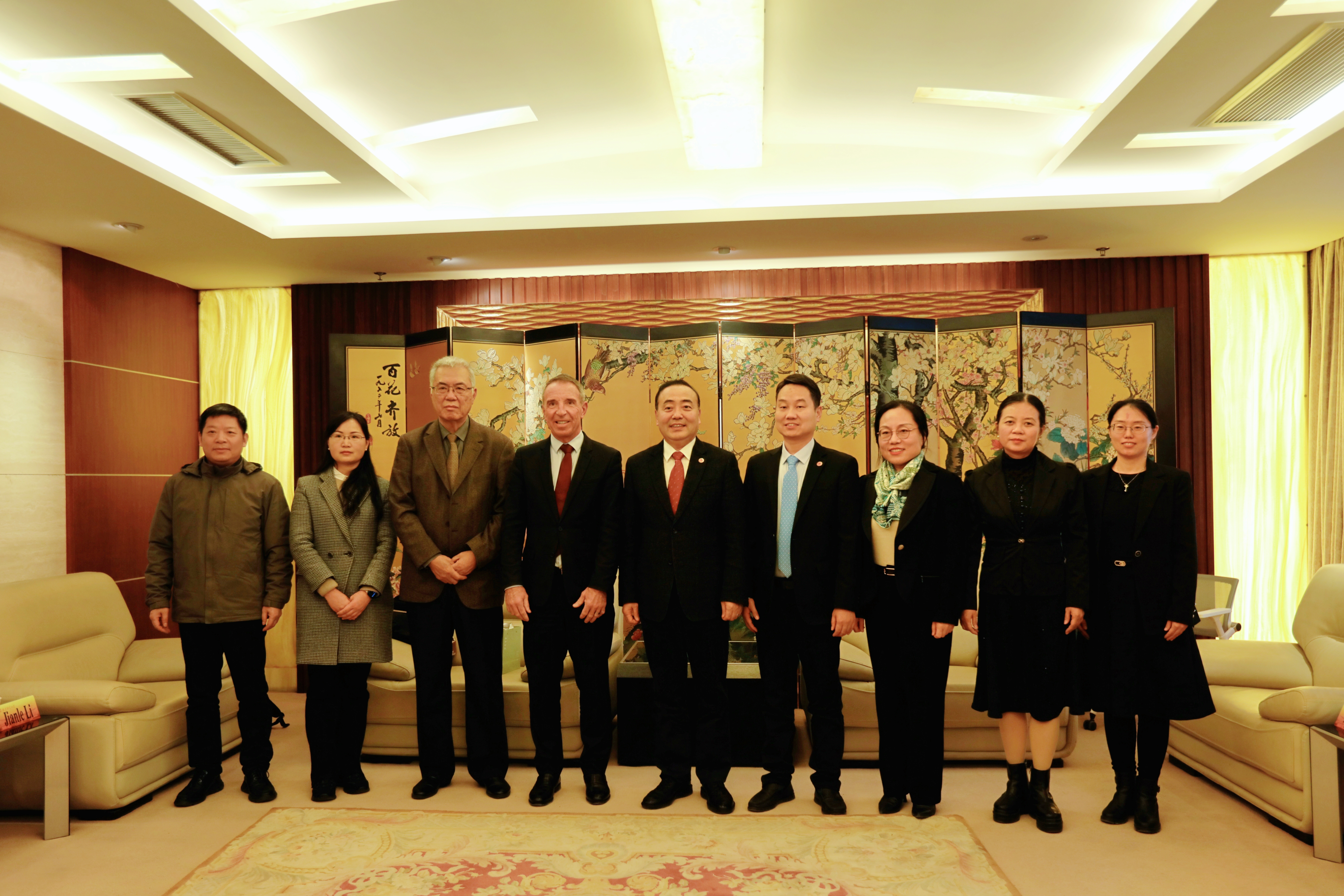 11月17日下午,法国高等对外贸易学院校长Christophe Boisseau,ESCE孔子学院院长和中法项目主任李建乐一行来访beat365。校长程永波,党委常委、副校长方勇会见了法国高等对外贸易学院客人,并就推进两校全方位、实质性深度合作进行了友好会谈。