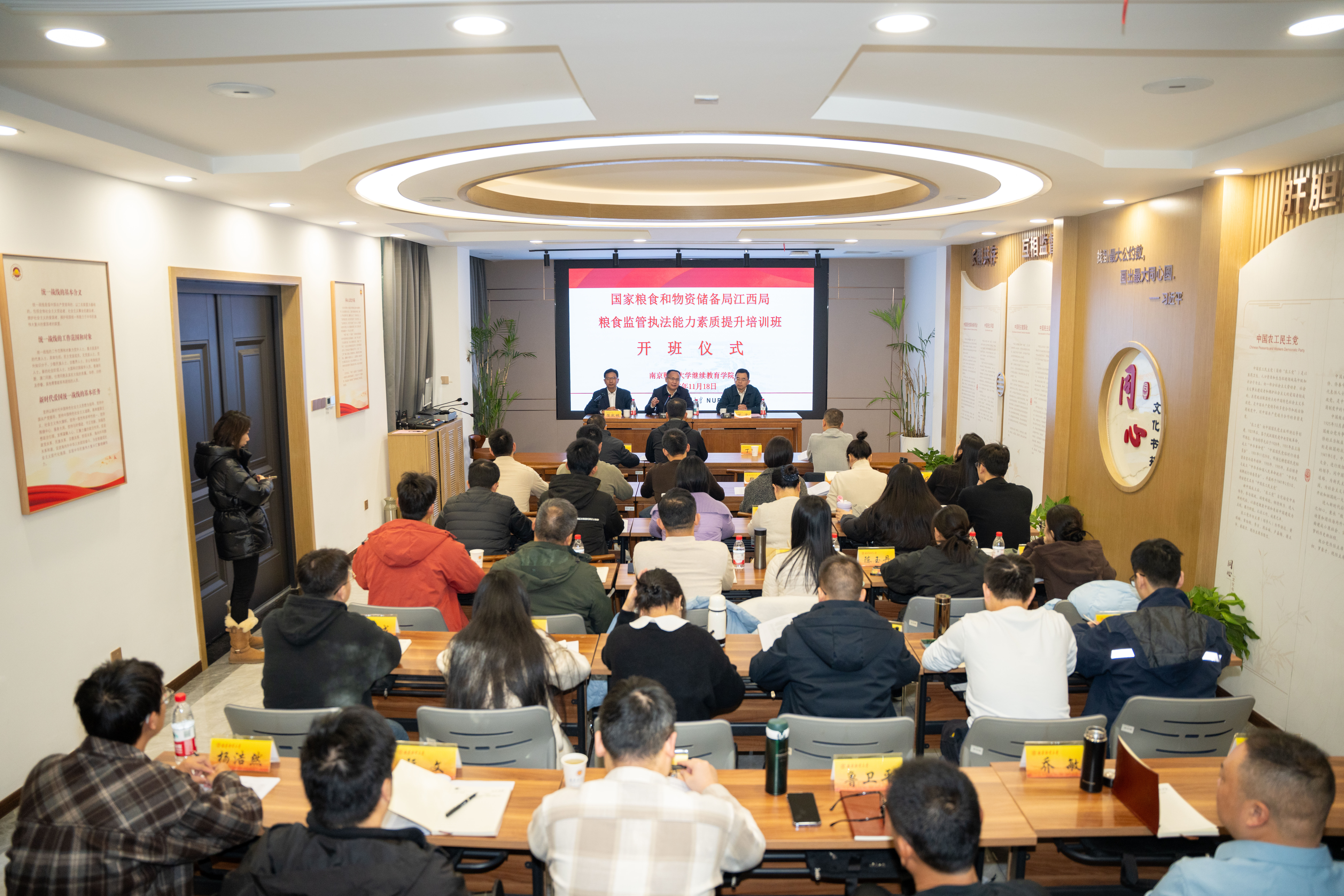 11月18日上午,国家粮食和物资储备局江西局粮食监管执法能力素质提升培训班开班仪式,在beat365仙林校区同心文化书苑举行。党委常委、副校长叶林祥教授,国家粮食和物资储备局江西局分党组成员、副局长丁宏出席仪式,培训班全体学员参加仪式。仪式由继续教育学院院长陈效林教授主持。