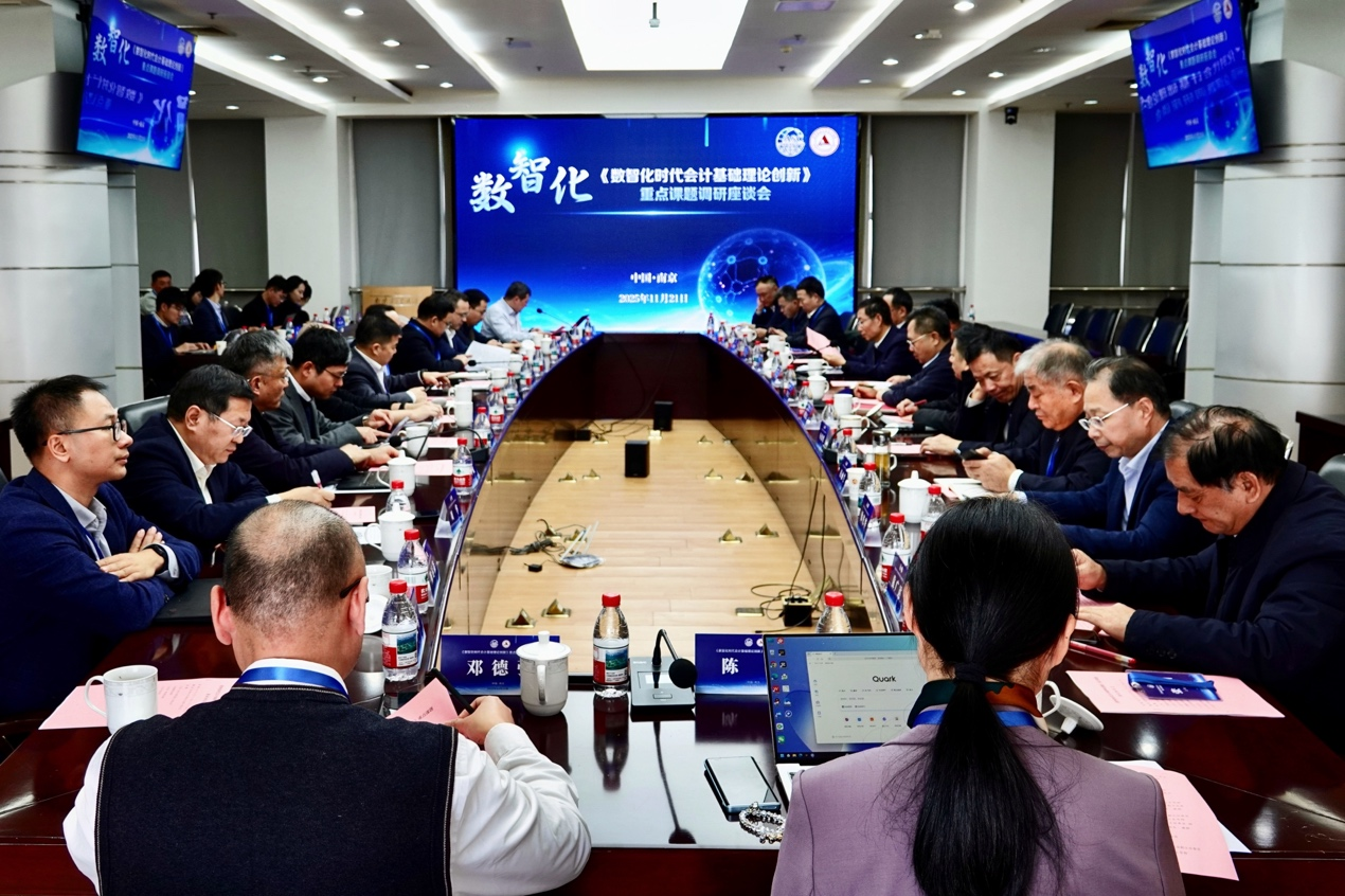 《数智化时代会计基础理论创新》重点课题调研座谈会在仙林校区行政楼16楼会议室召开。副校长张炳代表学校致欢迎词。他介绍了学校在服务国家战略和培养高层次财经人才中的重要使命,并表示本次会议议题对于提升学术话语权及服务国家治理现代化具有重要意义。财政部会计司一级巡视员、中国会计学会秘书长刘光忠代表中国会计学会致辞,阐述了当前自主会计知识体系建设面临的两项重要议题。
