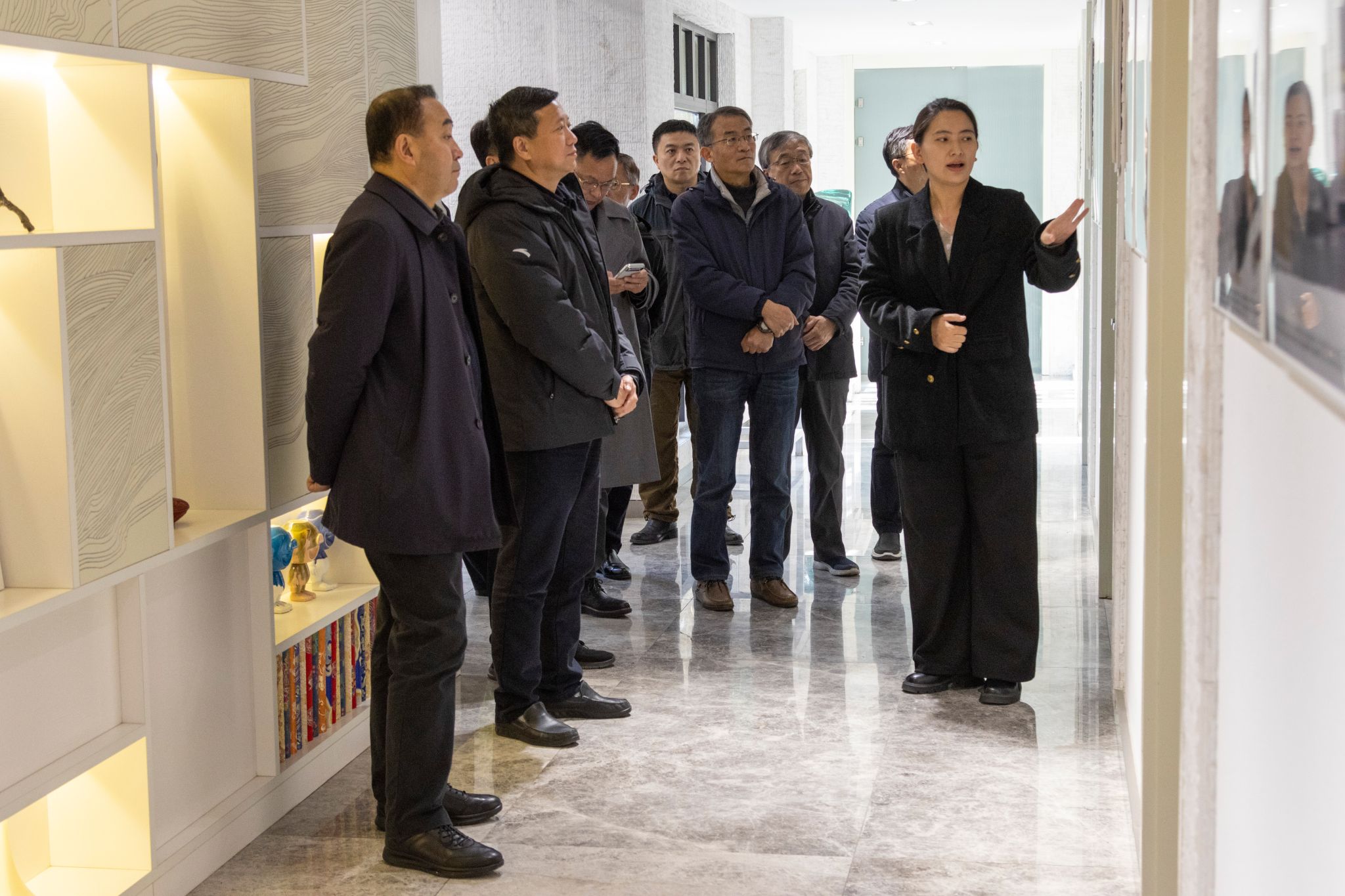 全体党委理论学习中心组成员、在校校领导前往百工造物红石榴家园参观,详细了解红石榴家园阵地作用发挥、非遗活化利用及育人效应。百工造物依托全国首个省级非遗创意基地,提炼“红石榴IP—同心”,推动各民族非遗技艺实现创造性转化与创新性发展,打造各民族文化交融共通的精神标识。