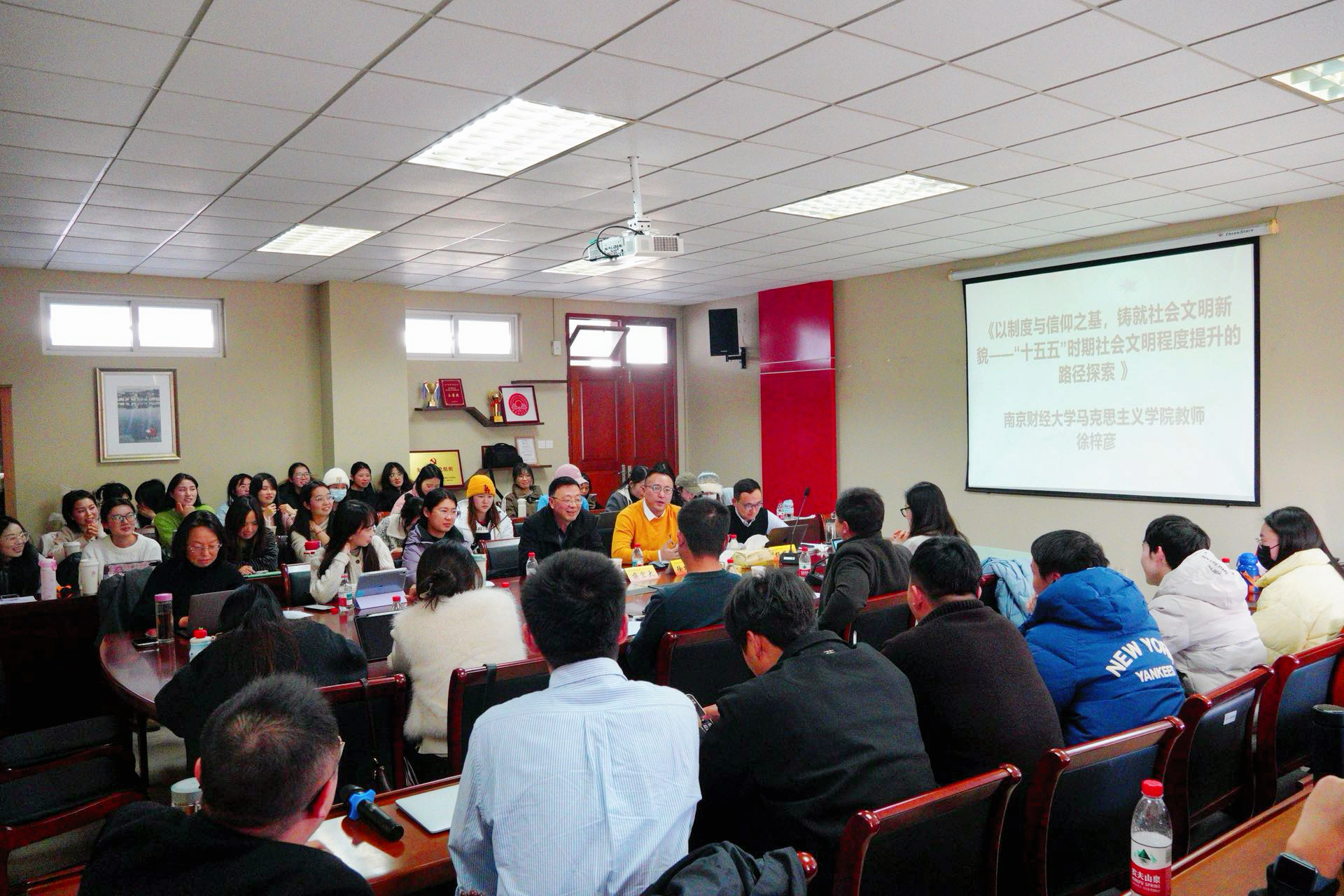 多位师生围绕“五年规划与现代化”“生态文明建设”“数字治理”“意识形态安全”等主题展开交流,现场研讨气氛热烈。