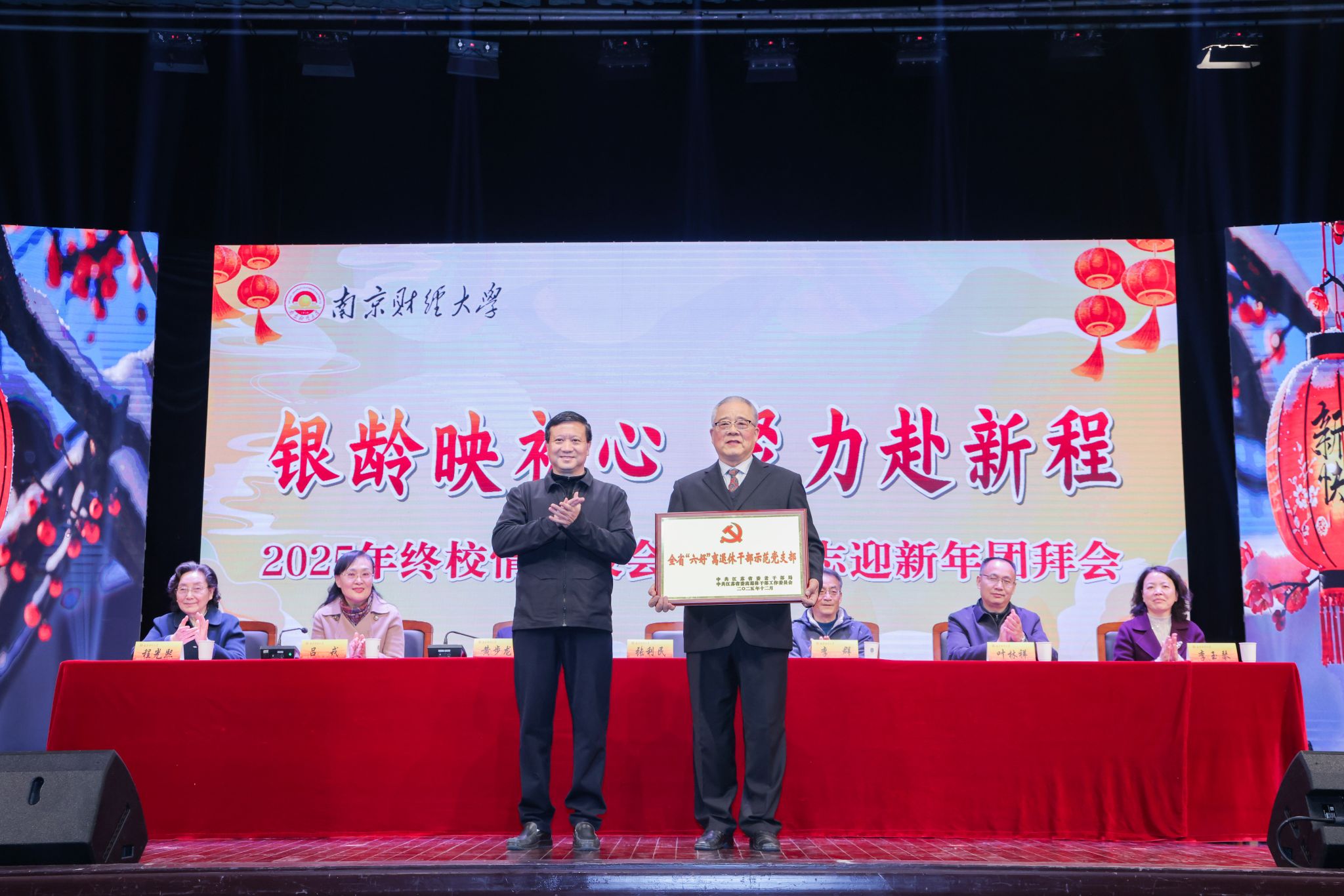 张利民书记为全省“六好”离退休干部示范党支部——离退休党委第十党支部颁发奖牌