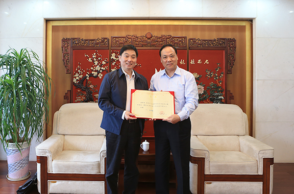 校党委书记陈章龙代表学校向江苏省审计厅葛笑天副厅长颁发兼职教授聘书