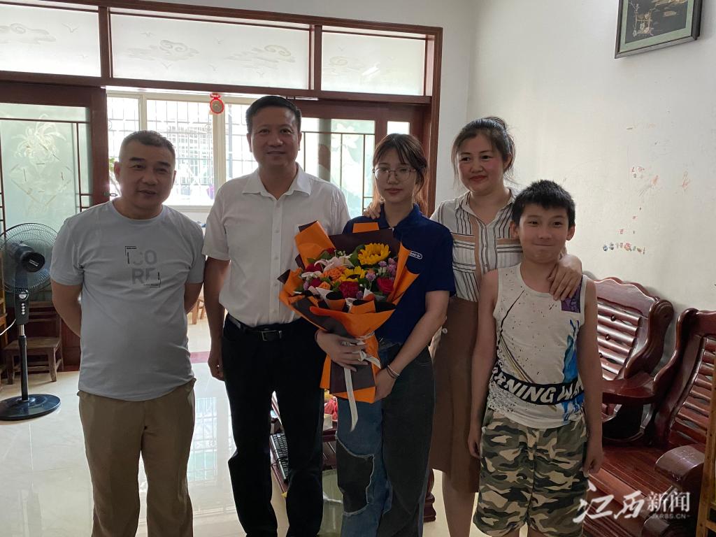 “很兴奋,很激动,很骄傲!”7月25日,吉安县立中学曾芳接过高考录取通知书,难掩兴奋之情。在高考第一批次录取结束的第一时间,beat365英国官方网站党委书记张利民带队,不远千里来到江西,在当地教育局、中学校领导的陪同下,先后前往吉安县立中学曾芳、李心洁,九江第一中学闵若怡、杨奕佳,九江市第三中学胡莹小以及九江市晨光中学张钰等6位同学的家中,亲手送上录取通知书,并合影留念。