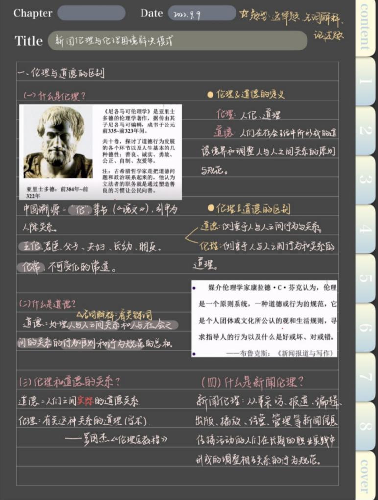 手速跟不上老师的速度是令许多同学头疼的问题,学霸们充分利用电子设备,实现图文同步,达到课后轻松复盘的效果。“上课时,老师们多会使用ppt展示课程内容,这时我往往只记重点内容和老师们的口头补充或者板书。课后,我再从老师的ppt上摘取一些书上没有的内容进行记录。并且,我做笔记时喜欢用不同的颜色标注不同重要程度的内容,这样的笔记更有助于复习。”新闻2101丁雪莹分享了她的笔记心得。