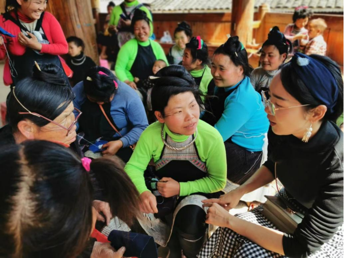 设计好激励机制,挺过没有产出的培训阶段,绣娘们接到订单后就开始了良性循环。就这样,越来越多的农村妇女慕名而来,加入到“非遗+扶贫”的事业当中,政府也给公司提供了各项优惠政策,共同推动贵州民族非遗的传承与发展。