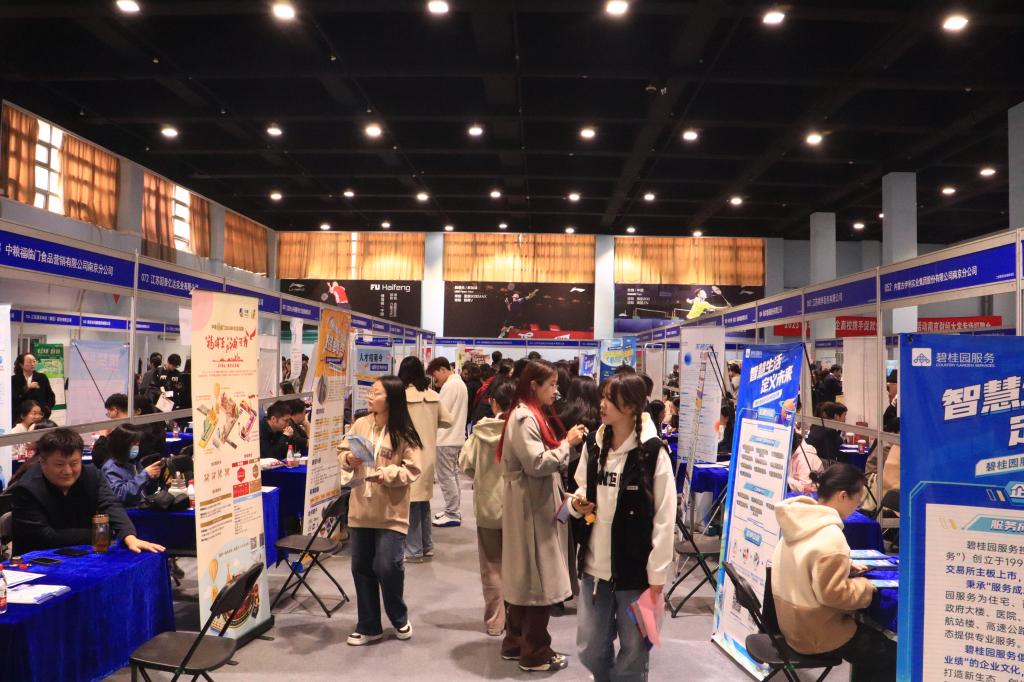 11月10日,江苏省2024届高校毕业生秋季校园招聘月金融、商贸及现代服务业暨“百城万企”民企高校携手促就业行动(秋季)江苏系列活动专场招聘会在beat365英国官方网站仙林校区体育馆举行。此次招聘会由江苏省教育厅、江苏省人力资源和社会保障厅、江苏省工商联主办,江苏省高校招生就业指导服务中心、江苏省劳动就业管理中心、江苏省职业介绍中心、南京市工商联、beat365英国官方网站承办。