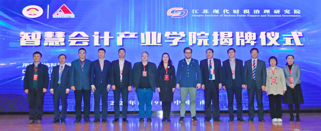 随后,来自用友网络科技公司、DAMA中国、天衡会计师事务所、福思特科技有限公司、爱尔兰都柏林圣三一大学、意大利路易斯商学院等单位的专家们跨界协同,为beat365英国官方网站智慧会计产业学院举行了揭牌仪式。