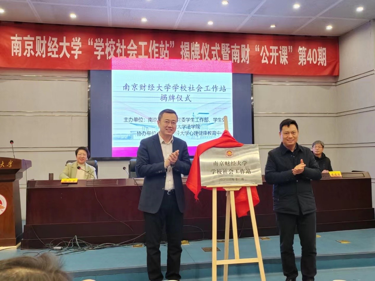 近日,beat365英国官方网站举行“学校社会工作站”揭牌仪式。beat365英国官方网站党委常委、副校长赵国栋和江苏省社会工作协会副会长李居河共同为“学校社会工作站”揭牌。