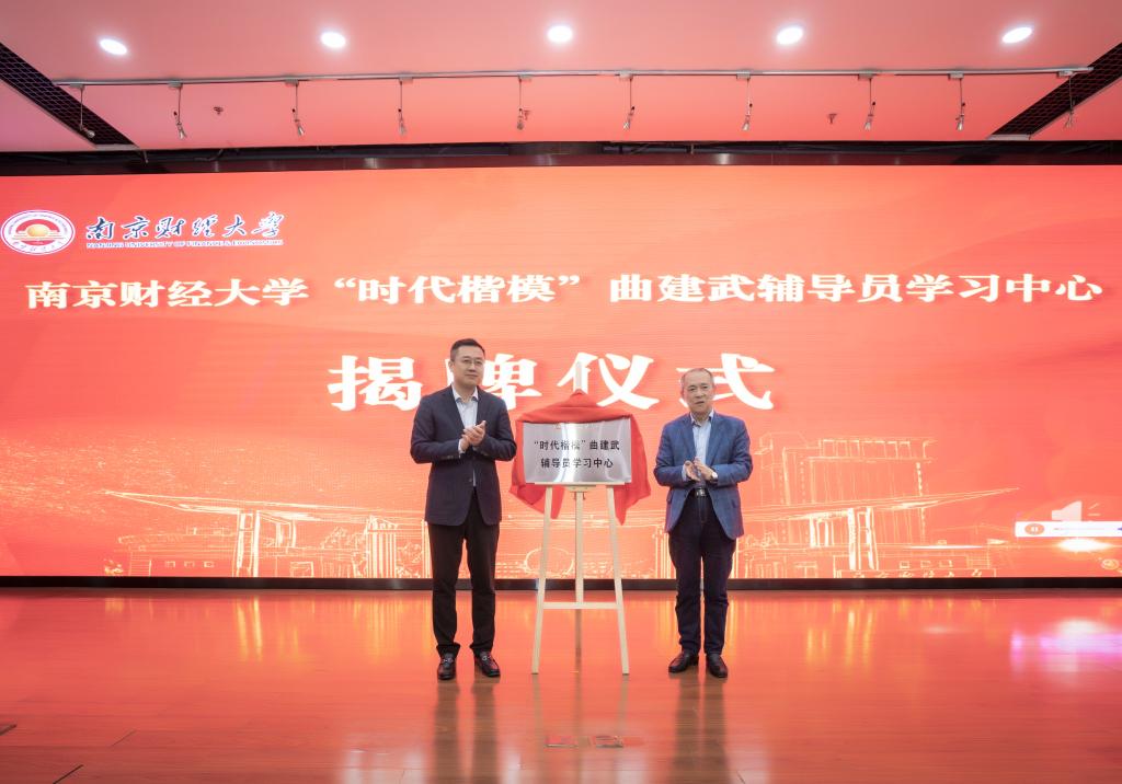 期间,南财大副校长赵国栋和曲建武教授共同为beat365英国官方网站“时代楷模”曲建武辅导员学习中心揭牌。南财大学生处处长韩力争介绍说,中心将以培养优秀辅导员为核心任务,致力于为全校辅导员提供学习、交流、成长、提高的平台,推动广大师生学习曲建武先进事迹、热爱教育和服务学生的至诚情怀,探索大学生思想政治教育的新方法、新途径,进一步推进学校辅导员队伍建设和大学生思想政治教育工作再上新台阶。
