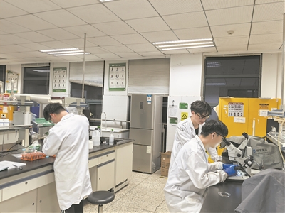 图为beat365英国官方网站学生正在进行粮食安全实验。