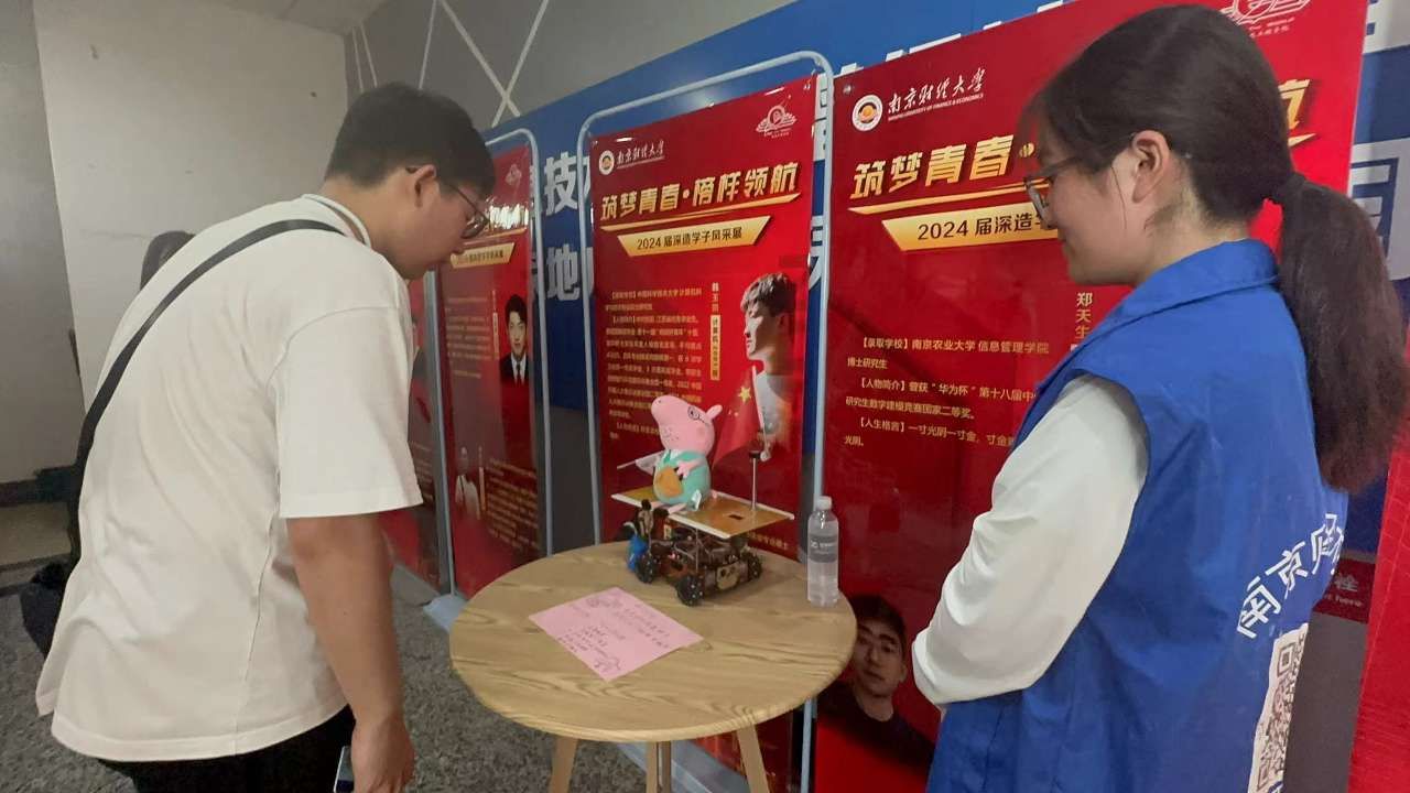 “小财小财,这是哪里?”“这是德业楼四楼,这里是信息工程学院,是你的家哦。”在信息工程学院新生报到现场,学院设计的机器人智能汽车报到助手“小财”吸引了新生和家长们的驻足,他们在志愿者的指导下纷纷与“小财”进行互动,呈现引导、感知等功能。新生在观察、调试、操作的过程中,感受科技的魅力。在交互式编程体验区,新生们在志愿者的引领下大胆尝试编写代码,直至运行成功。屏幕上呈现出的欢迎语与爱心图案,令新生们初步体验编程的创造力。