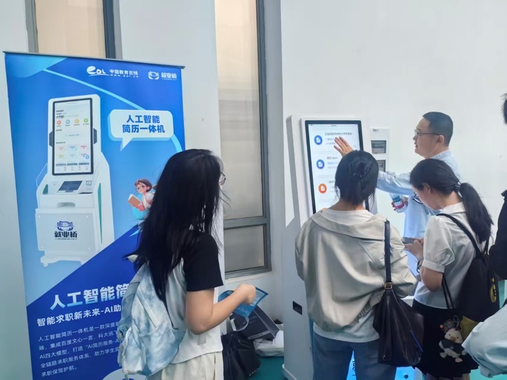 招聘会现场还首次引入了简历打印一体机、面试一体机。设备整合多模态AI技术,实现从简历智能撰写、面试模拟预测到职场问答、一键打印的全链路求职支持,吸引不少同学排队体验。“模板多、反馈快,还能模拟面试,帮我发现不少细节问题!”国际经贸学院国实2201班王梦龙称赞道。