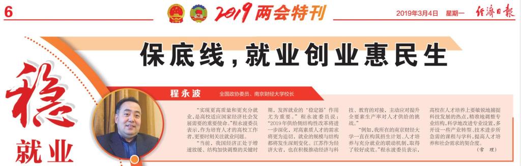 “当前,我国经济正处于增速放缓、结构加快调整的关键时期,发挥就业的‘稳定器’作用尤为重要。”程永波委员说:“2019年供给侧结构性改革将进一步深化,对高素质人才的需求将更为迫切,就业的规模与结构都将发生深刻变化。江苏作为经济大省,也在积极推动经济与科技、教育的对接,主动应对提升全要素生产率对人才供给的挑战。”