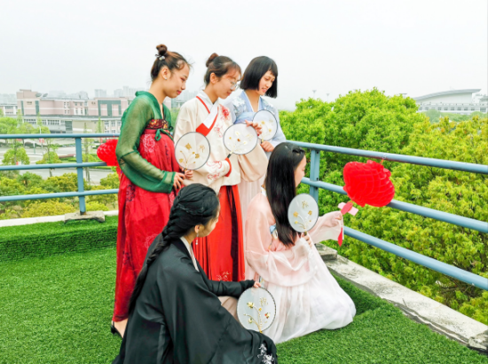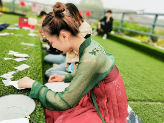 参加雅集的同学全部身着汉服,三五成群地参与到各类税收特色文化活动中,有的拿起针线仔细地在团扇上绣着象征农业的麦穗和“税”字,有的在宣纸上挥毫写下不同字体“税”,有的同学选择猜税法灯谜,还有人用红豆、绿豆、黄豆等粮食绘制谷物画。现场着实一派“文人墨客吟风颂月”的景象,而随处可见的“税”字也显现出同学们对专业的理解。活动负责人、财政与税务学院学生会主席杨璐遥同学说:“选择在谷雨时节开展活动是有着特别的考虑的,首先是取了"雨生百谷,税泽万户"的寓意,又很好地结合了传统文化。近来结合传统文化的各类活动都能得到很多同学的喜爱和支持。”