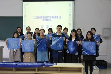 学生动手制作蓝印花布手帕