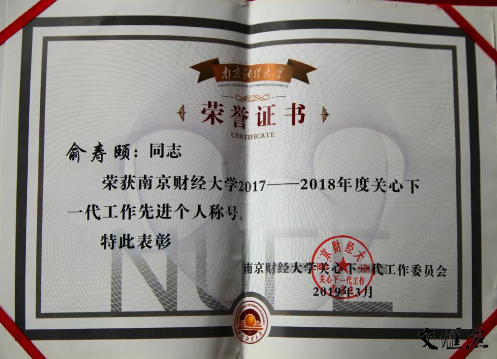 前不久,俞寿颐获得了“中国人民志愿军抗美援朝出国作战70周年”纪念章。在南财举行的纪念抗日战争、世界反法西斯战争胜利75周年暨抗美援朝70周年座谈会上,临走前,有人担心他把纪念章搞丢了,要帮他放入手提包的最里层,他指着自己的心说:“这个奖章不重要,它永远在我这里。”