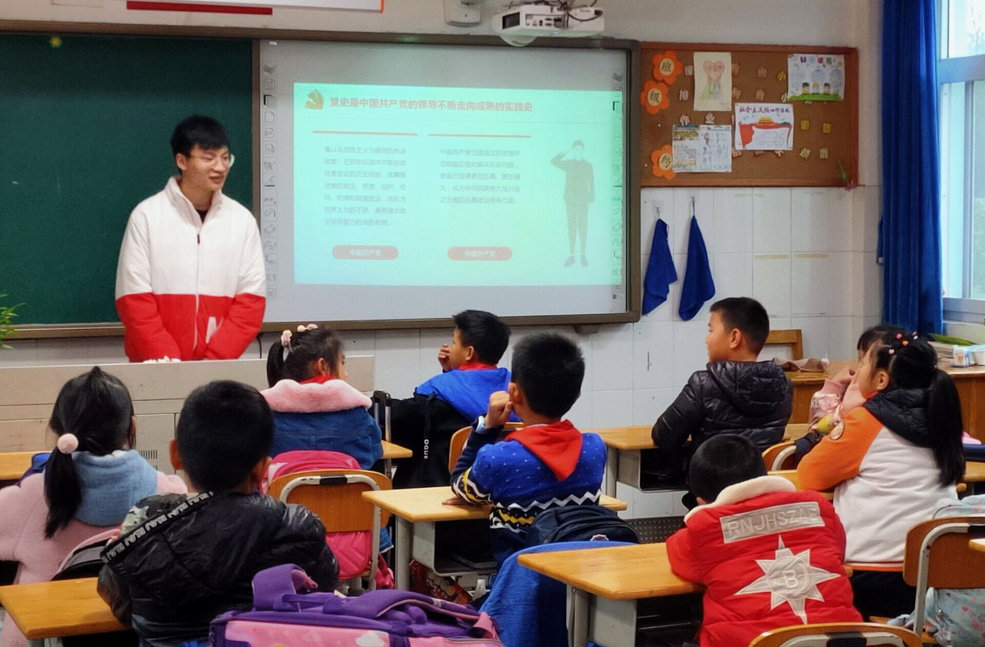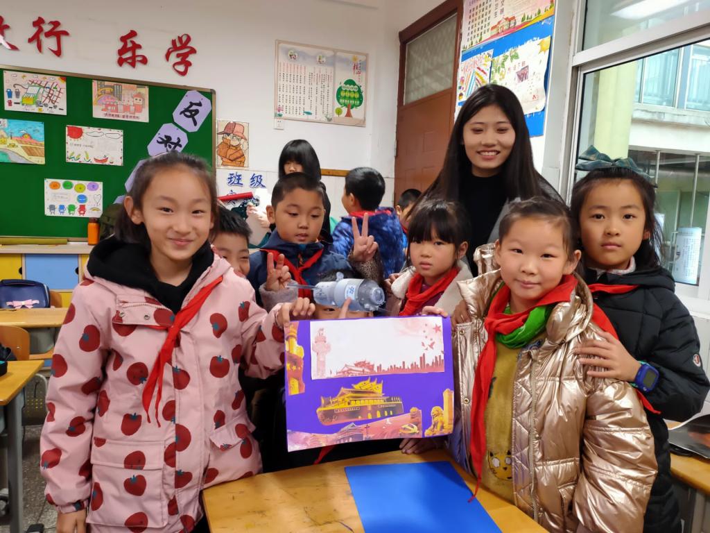 管理科学与工程学院志愿者带领小学生贴出“四史”画卷