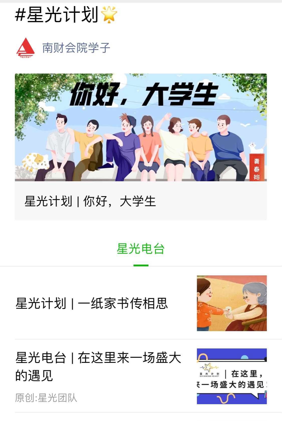 上线至今,“星光电台”针对大学生原生态家庭问题、人际关系、恋爱问题、自我成长、职业规划等热门问题,已分八期完成内容推送,以有声的方式“陪伴”和“倾听”,帮助同学们寻找自己的答案,探索自我成长的途径。“你……要不要做我男朋友”的情感专题在同学中产生了极大的反响,同学们纷纷转发,审计1902班吴仪同学表示:“我们受过这各种各样的教育,唯独缺少‘爱’的教育,在电台中我们仿佛听到了自己的心声,找到了内心的共鸣。”