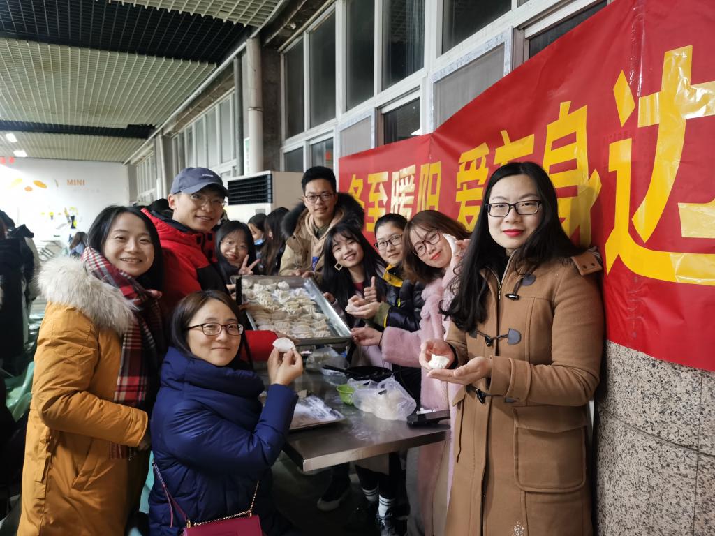 外国语学院“小太阳”志愿者服务队走进仙林老年颐养中心,和老年朋友们一起聊天、包饺子,传递冬至的温情。现场,有的学生技术娴熟、一气呵成,也有人不知如何下手,几位爷爷奶奶现场教学,大家在互相帮助、欢声笑语中忙得不亦乐乎。“小太阳”们分工协作,干劲十足,有的使出浑身解数,现学现做,包得形状各异;有的自我创造各种有趣形状,赢得大家赞叹。于雪莲同学还即兴演唱了一曲《这个冬天不太冷》。和蔼可亲的大学退休教授张爷爷说:“每逢过年过节,都会和家人一起吃饺子,包饺子让我想起了家的味道。”活动最后,志愿者和老年朋友们依偎合影,定格这美好的瞬间。